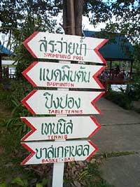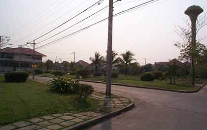 As entered on Ramkamhaeng soi 112, the beginning of the village is now dominated by a diverse row of stores and shops on both sides of the road. I believe this part's been heavily rebuilt. At the water tower there is a fork in the road. You can find an old part of Sammakorn if you just go straight and then to the left of the old lake, but many people get lost there, too. If you turn right, however, then you are on your way to the most prestigious parts of Sammakorn and a nicer main road. This is the only possible right hand turn from the 112 entrance, but it's easy to miss with all the parked cars and activity going on, despite the large size of the road.