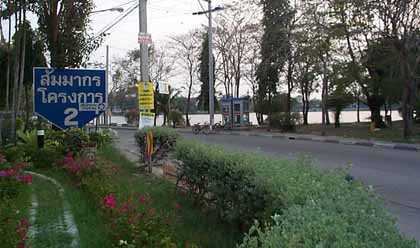 There is a big sign that marks the beginning of phase 2, with a big number "2" on it (in case you can't read Thai), as pictured above. The second and third big lakes are in phase 2, and come close to the road. You may note the creaky old windmill on the second lake, which used to pump water in years past, perhaps back to phase 1. This second lake has a small park, some popular piers which people enjoy in the evening, a few restaurants, and some luxurious private property. The third lake is down a little further, and is where the nicest restaurants are, sporting no less than 8 nice restaurants on the lake itself, plus others across the street. Most of these are on the main road.