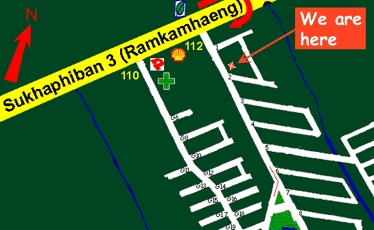 พวกเราอยู่บริเวณที่ใกล้ๆกับป้ายรถเมล์และวินมอเตอร์ไซด์รับจ้าง ห่างประมาณ 50 เมตรจากถนนสายหลัก